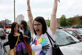 Mile 11-13 were the toughest. They were all milestones I had never experienced. They were also harder because it was raining and talk of bad weather was all around me. When I saw mile 13, I began to celebrate. We were almost there. .1 of a mile left. The fans were cheering everyone on as each person crossed the finish. We crossed it at the exact time arm in arm. Tears began to pour down my face for the millionth time that day. We did it!!! Crossing the finish was just as sweet as crossing the starting line. A few hours south two more of my friends had felt the same feeling. Victory. We all had done it. 13.1. Bethany and I met up with the rest of the crew and we all had our big reunion. Sara and Lane, our super fast friends finished in like 10 minutes. J We hugged and all started sharing stories immediately. The next thing on the agenda was the car.