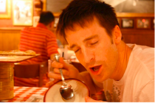 Later that night we went to Buca Di Beppo for pasta of course. It is what every runner loads up on before. CARBS!!!! Maybe I should stop and share the we…WE included Dave, Peggy, Owen, Lane, Bethany, Sara and I. I have to include Dave, Peggy, and Owen because they were our number 1 fans by far. Matthew and Debbie were following us all morning of the race, but those 3 were there all the way. We had an eventful meal that included all of us trying to look like this guy.