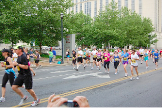 What I loved the most about the ½ is that everyone had a story. So many people were running for something. Some wrote it on their bodies or had it printed it on their shirts, others carried signs and one man carried an American flag. You also had the people that hula-hooped the whole time, wore tutus and other cute outfits, ran barefoot, etc. I saw cancer survivors or people still battling with it, war vets, parents with loss of children, others with loss of parents etc. There were so many reasons for their runs, I loss count. I did however see many that brought tears to my eyes. The woman running with a brain tumor, the parapeligic going strong, a girl in her 20’s with the loss of her dad and many more.