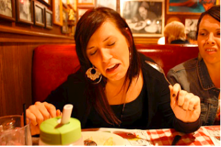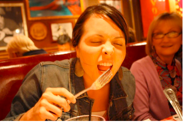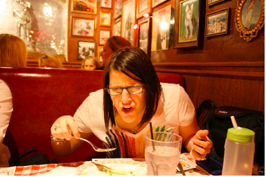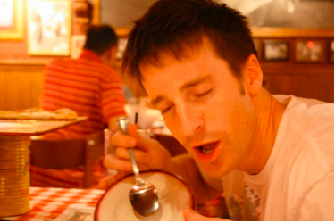 Later that night we went to Buca Di Beppo for pasta of course. It is what every runner loads up on before. CARBS!!!! Maybe I should stop and share the we…WE included Dave, Peggy, Owen, Lane, Bethany, Sara and I. I have to include Dave, Peggy, and Owen because they were our number 1 fans by far. Matthew and Debbie were following us all morning of the race, but those 3 were there all the way. We had an eventful meal that included all of us trying to look like this guy.